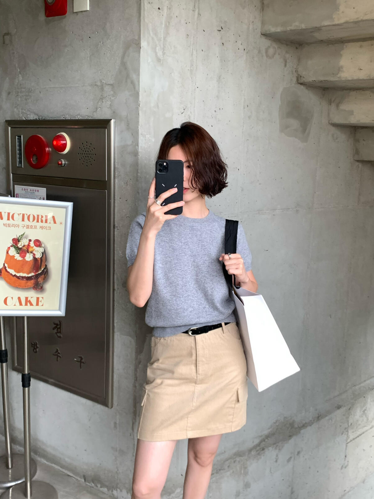 KITTIN-WoolBlend | Simple Rabbit Wool Blend Short-Sleeve Button-Back Sweater Y1573